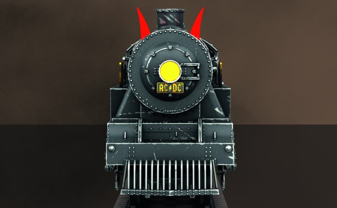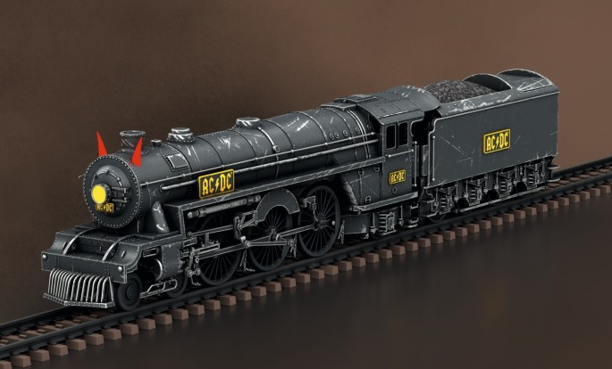 Die Lokomotive und der Tender bestehen weitgehend aus Metall. Ausgestattet mit umfangreichen Licht- und Soundfunktionen, verfügt die Lok zudem über einen Raucheinsatz für dynamischen Rauchausstoß, eine auf Rot umschaltbare Stirnlampe, einen Kuhfänger und beleuchtete Teufelshörner. Die Lok wird in Handarbeit gealtert und mit dem AC/DC Logo der Tour veredelt.