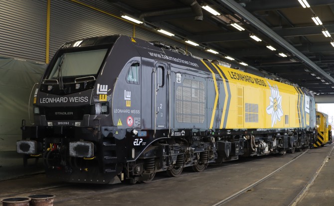 Bei Leonhard Weiss ist die Maschine somit zum Einen perfekt für den Zubringerdienst über lange Strecken geeignet, zum Anderen können die Züge ohne Umspannen direkt in die fahrdrahtfreien (oder stromlosen) Baustellen gefahren werden.